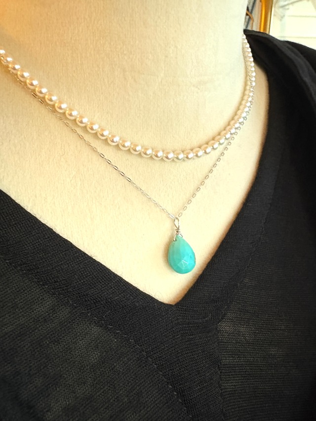 ブルーが美しいターコイズのペンダントトップ お好きなチェーンに通せます プラチナチェーン(〜45㌢スライド)は別売りになります