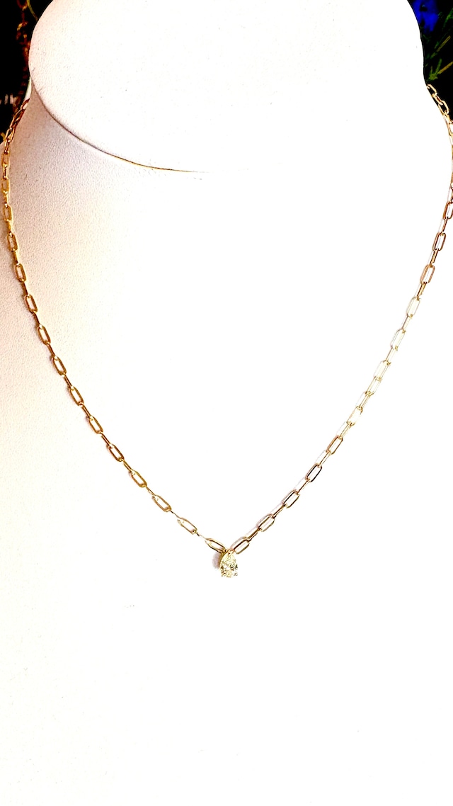 ペアシェイプのダイヤ(0.35ct)のついたK18のざっくりしたチェーンがバランスのよいネックレスです デイリーに活躍しそうです 〜45㌢スライドで長さが調整できます