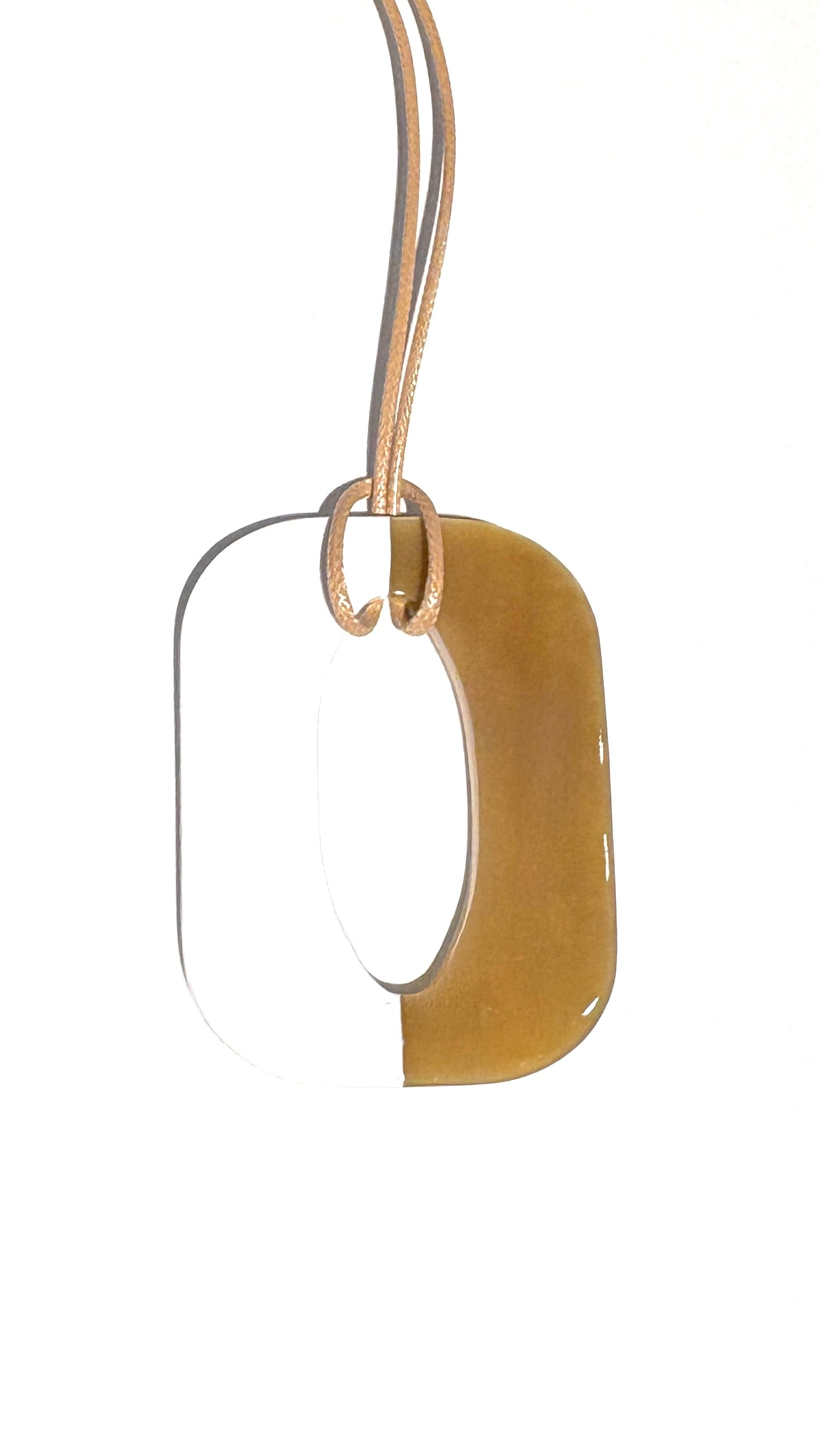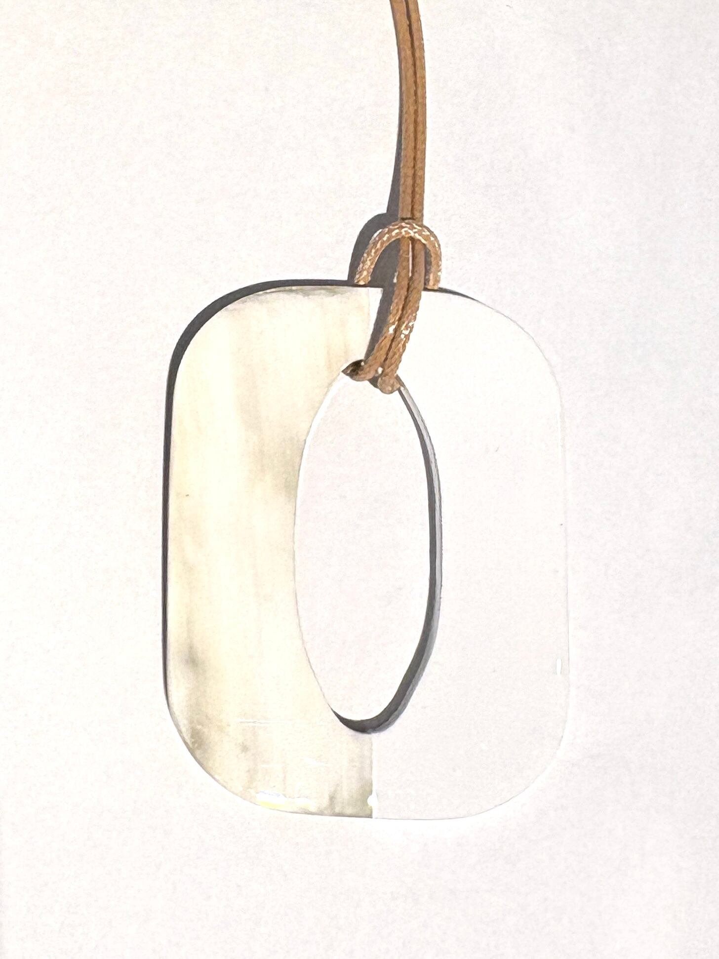フランスから届いた水牛のコレクション。表と裏の色のニュアンスの違いも2パターン楽しめます。紐の長さは自由に調節できます。被れる長さなので、年配の方にも人気があります。これをつけるだけで一気に夏の印象に。お揃いのピアスとイヤリングもあります。