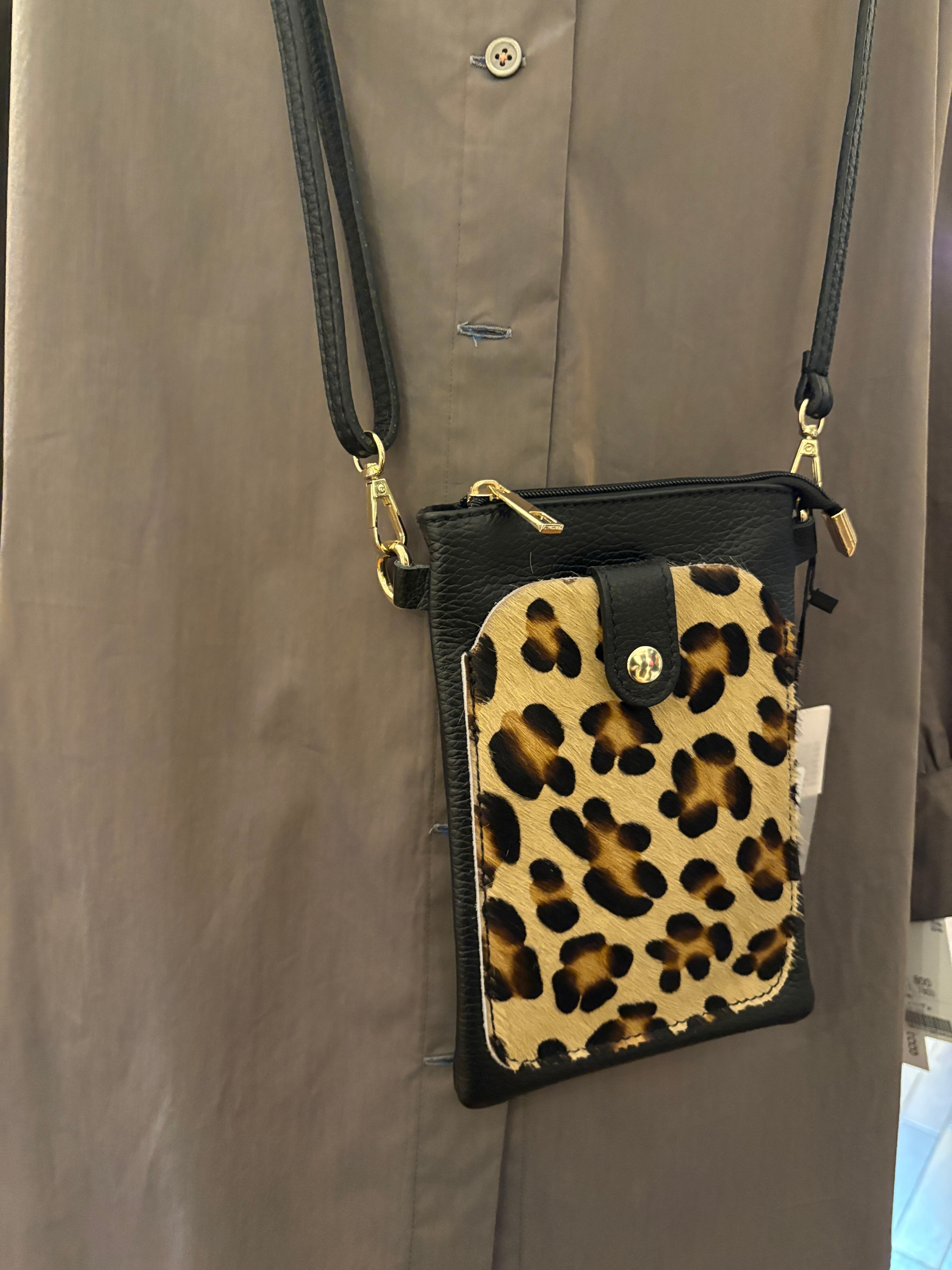 ヒョウ柄のレザーショルダーバッグ